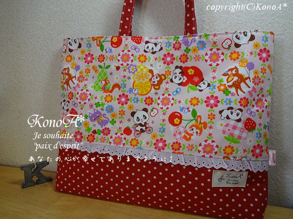 ふんわりアニマルブロック柄ピンク:レッスンバック