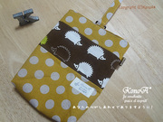 からし色の大きな水玉と茶ベースのハリネズミがベストマッチ!!