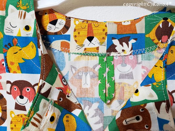 動物さんの顔写真:前開きノースリーブスモック110~120